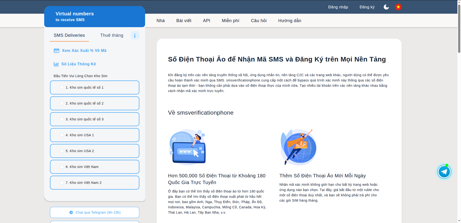 Hệ thống cho thuê sim ảo tự động tích hợp 7 nhà cung cấp sim lớn trên thế giới, cung cấp giải pháp nhận SMS xác thực cho người dùng Việt Nam với giao diện tiếng Việt thân thiện.